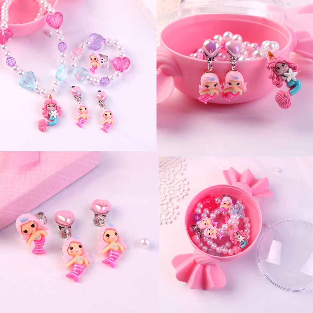 クロスボーダー人気マーメイドプリンセスジュエリー5点セット子供の日女の子ネックレスブレスレットイヤリングセットギフトボックス