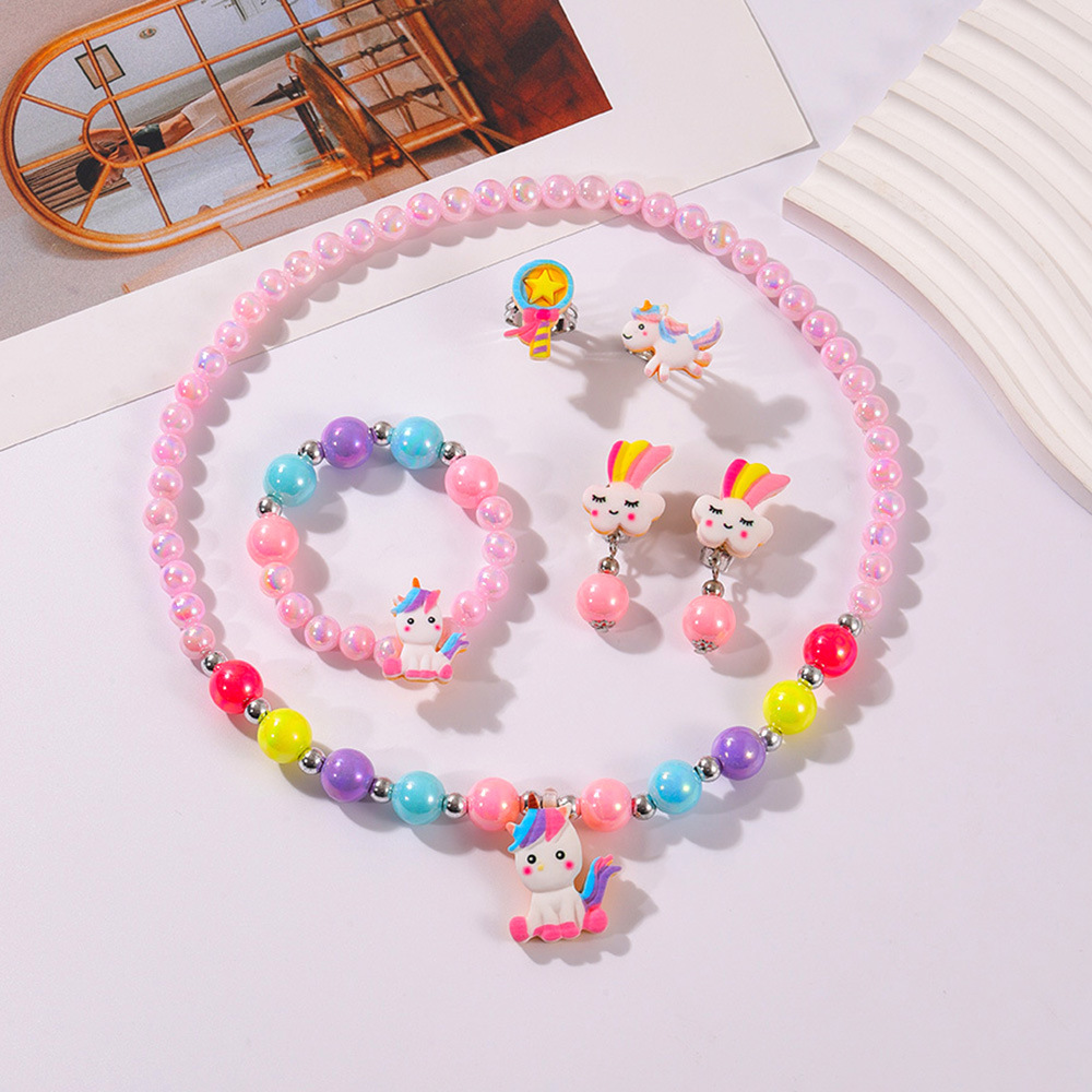 ユニコーンネックレスブレスレットセット樹脂ペンダント + アクリル子供ビーズ欧米動物アニメ子供ネックレス