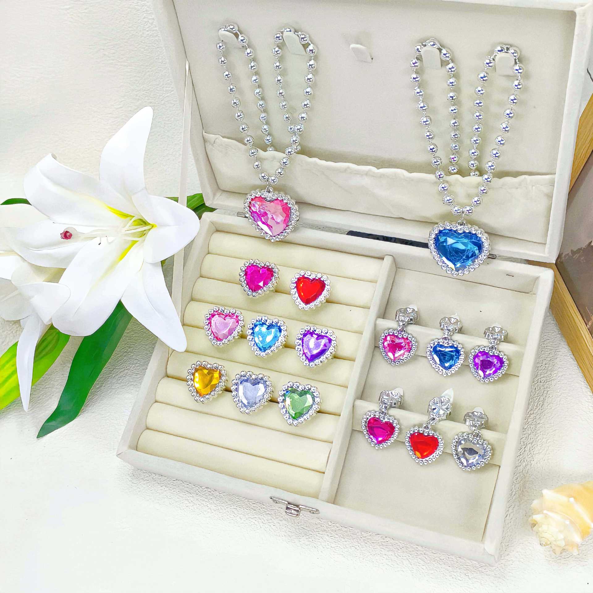 エルサ姫子供用ネックレスジュエリーセット 女の子用イヤリングリングアクセサリーDIYホリデーデコレーション人気商品キラキラ