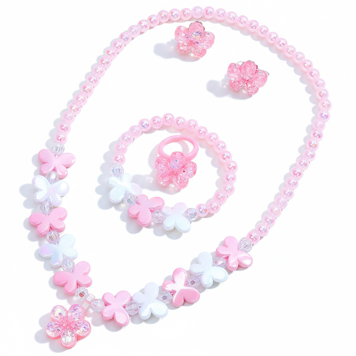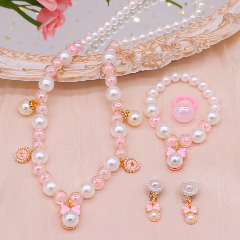 クロスボーダー新型小清新ブレスレット愛蝶ネックレスセット甘い王女真珠ビーズ子供アクセサリー