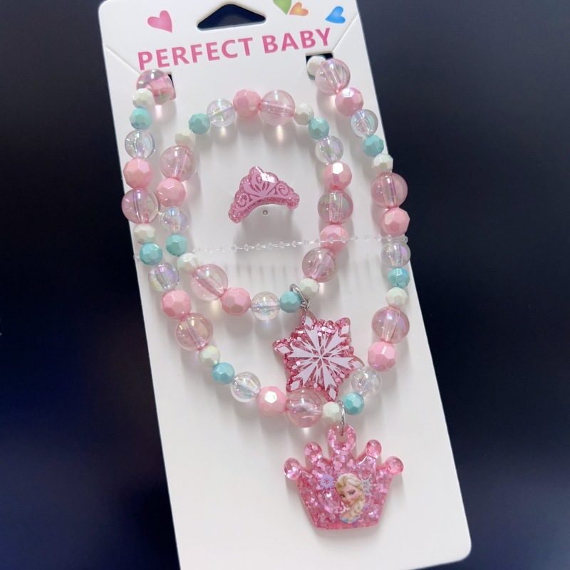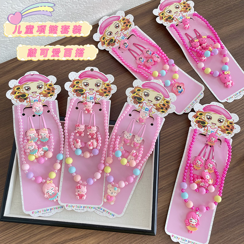 クロスボーダー子供漫画ジュエリーセット女の子真珠ネックレスブレスレット髪ひもプリンセス甘いピンク系アクセサリー