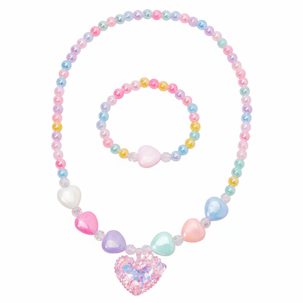 2点セットピンクハートブレスレットネックレスセット子供用アクセサリーカラーアクリル手作りdiyビーズジュエリー
