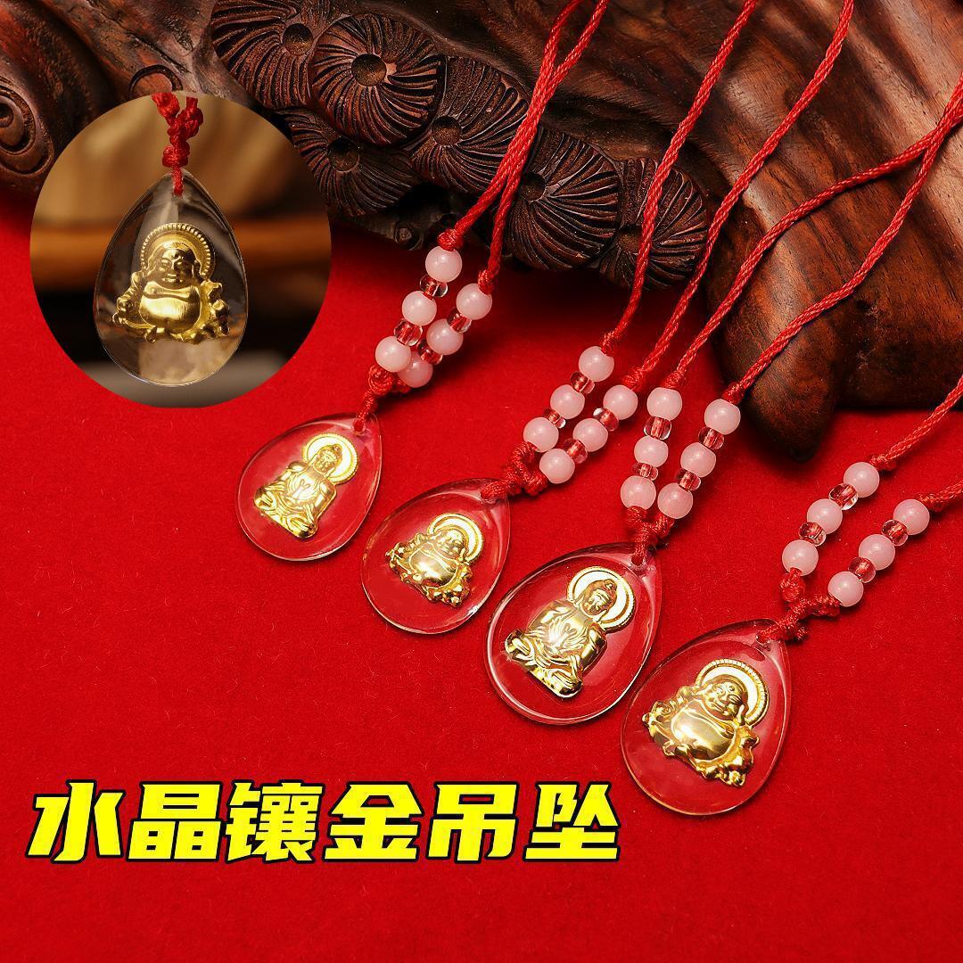 金箔結晶美金男女児童金紅縄水晶ペンダント観音仏大トランペットアクセサリーペンダントネックレス