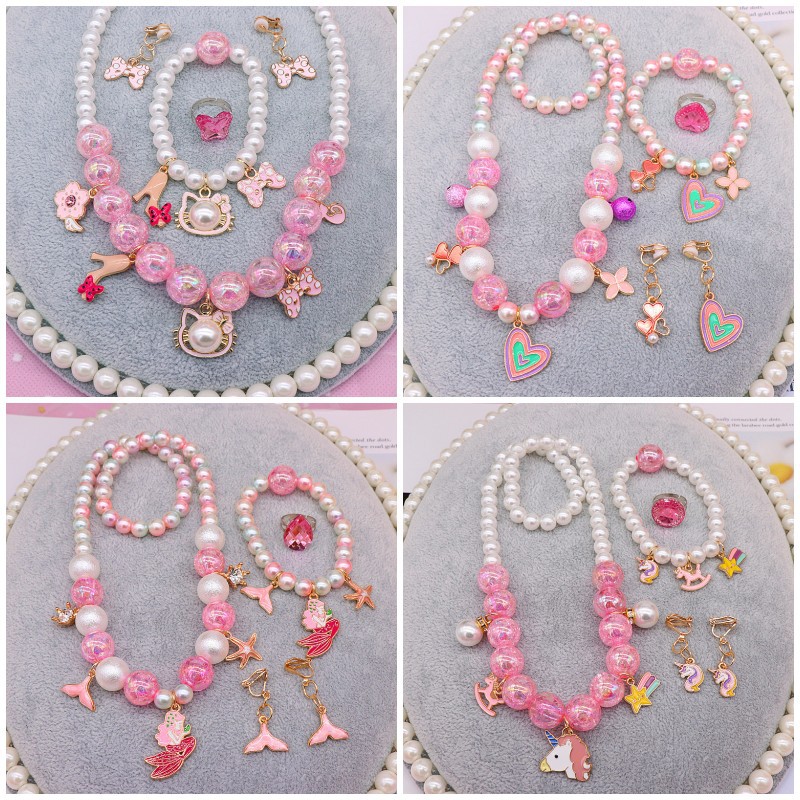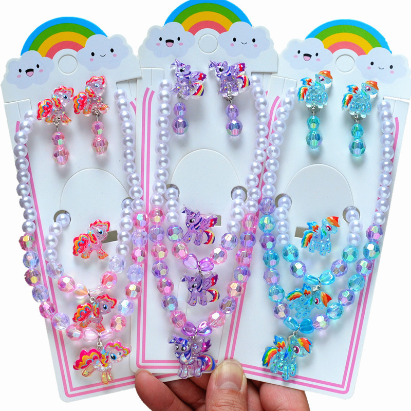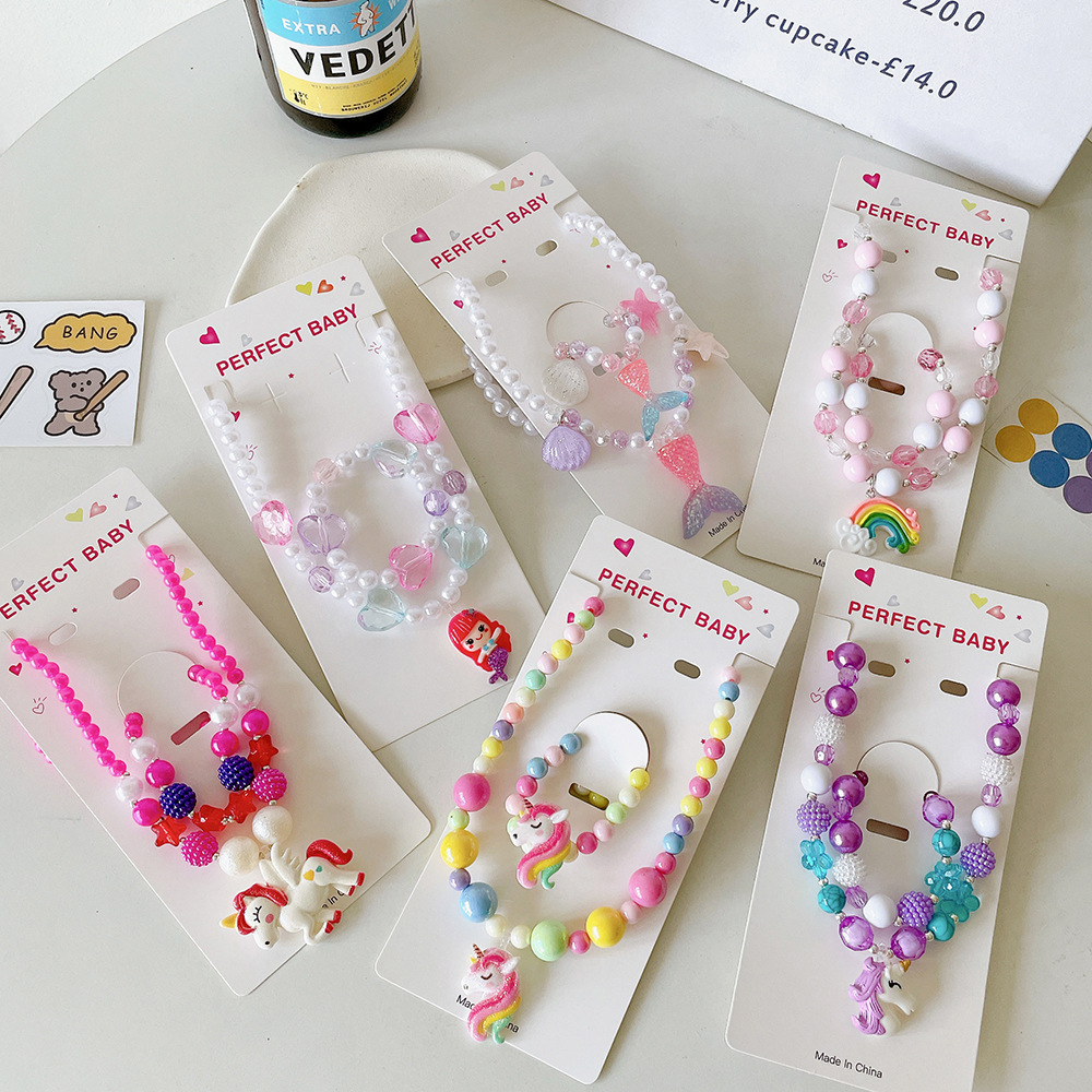 子供用ネックレスユニコーンパールプリンセスジュエリークロスボーダー女の子ハロウィーンドレスギフトマーメイドブレスレット