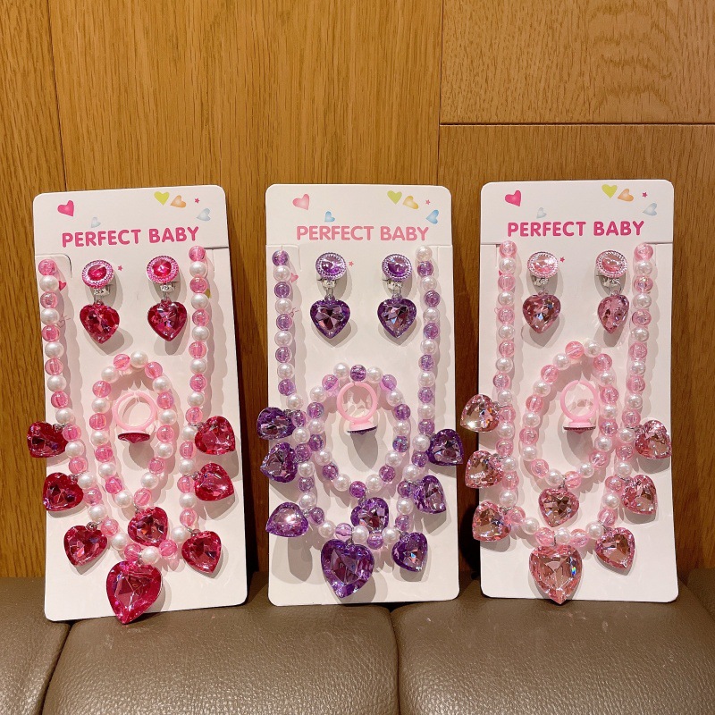 子供のネックレスセット女の子プリンセスラブブレスレットイヤリング宝石リング少女ベビージュエリーギフト