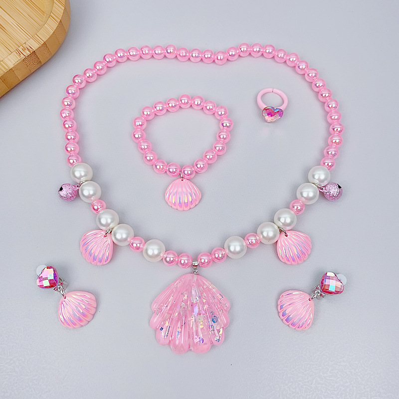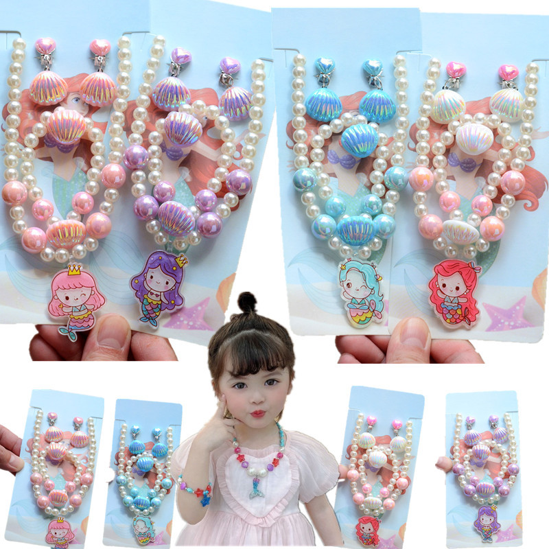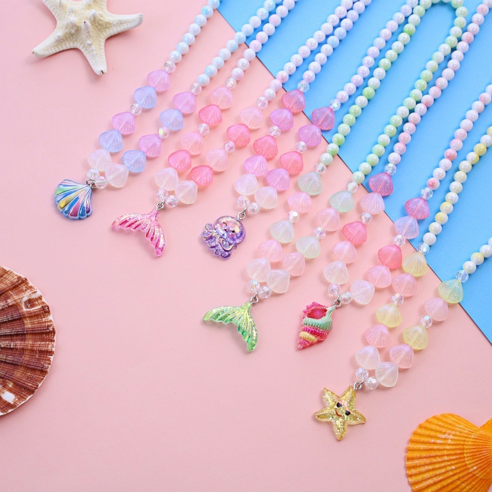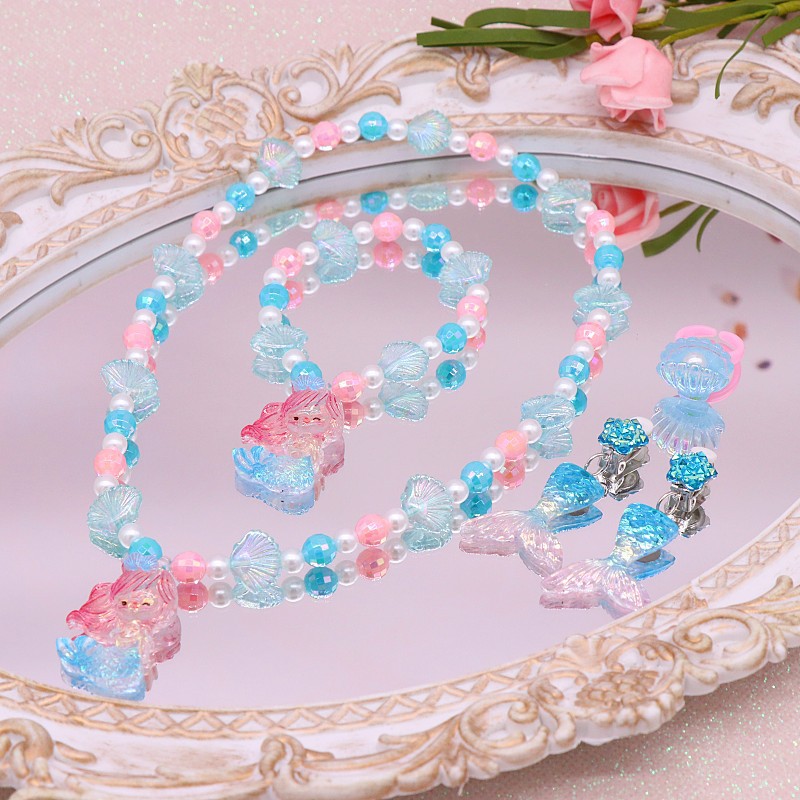 新商品子供プリンセスマーメイドネックレス女の子ビーズブレスレットファンタジー鱼しっぽシェルジュエリーセット