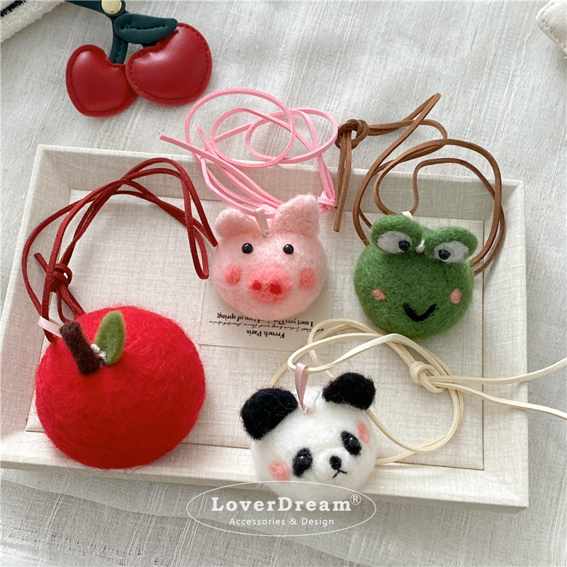 新しい色のウールのフェルトのパンダのカエルのブタの子供のネックレスは甘くてかわいいです。