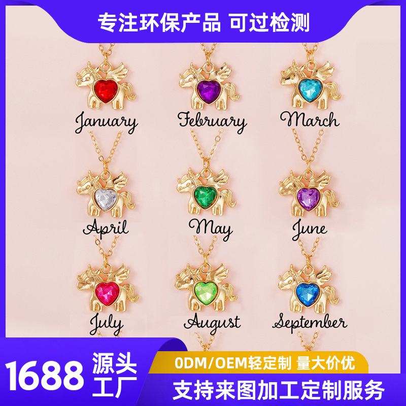 クロスボーダー熱売十二生辰石ネックレスペンダントins漫画ユニコーン児童アクセサリースポット卸売り