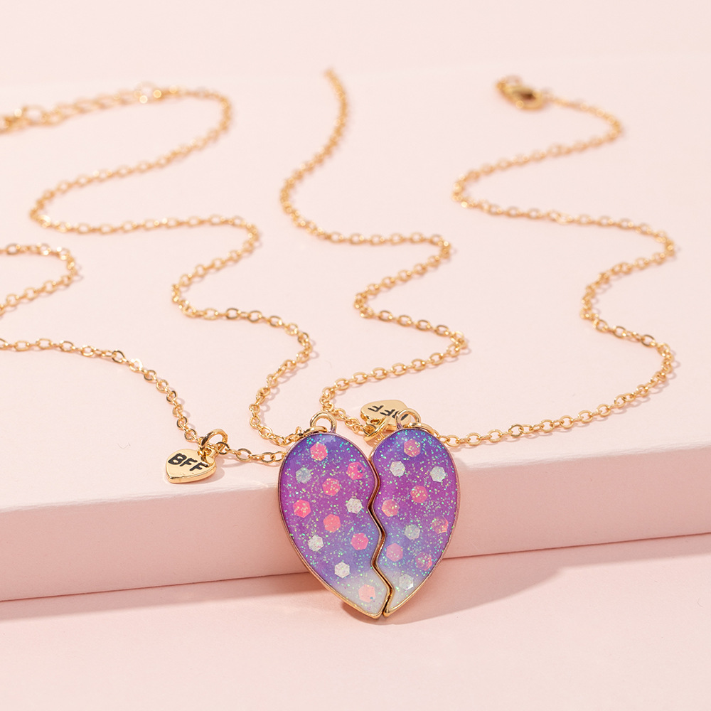 クロスボーダー热い贩売仲良しbff桃心マグネット相吸子子供ネックレス2本セット爱ハートネックレス子供用ネックレス