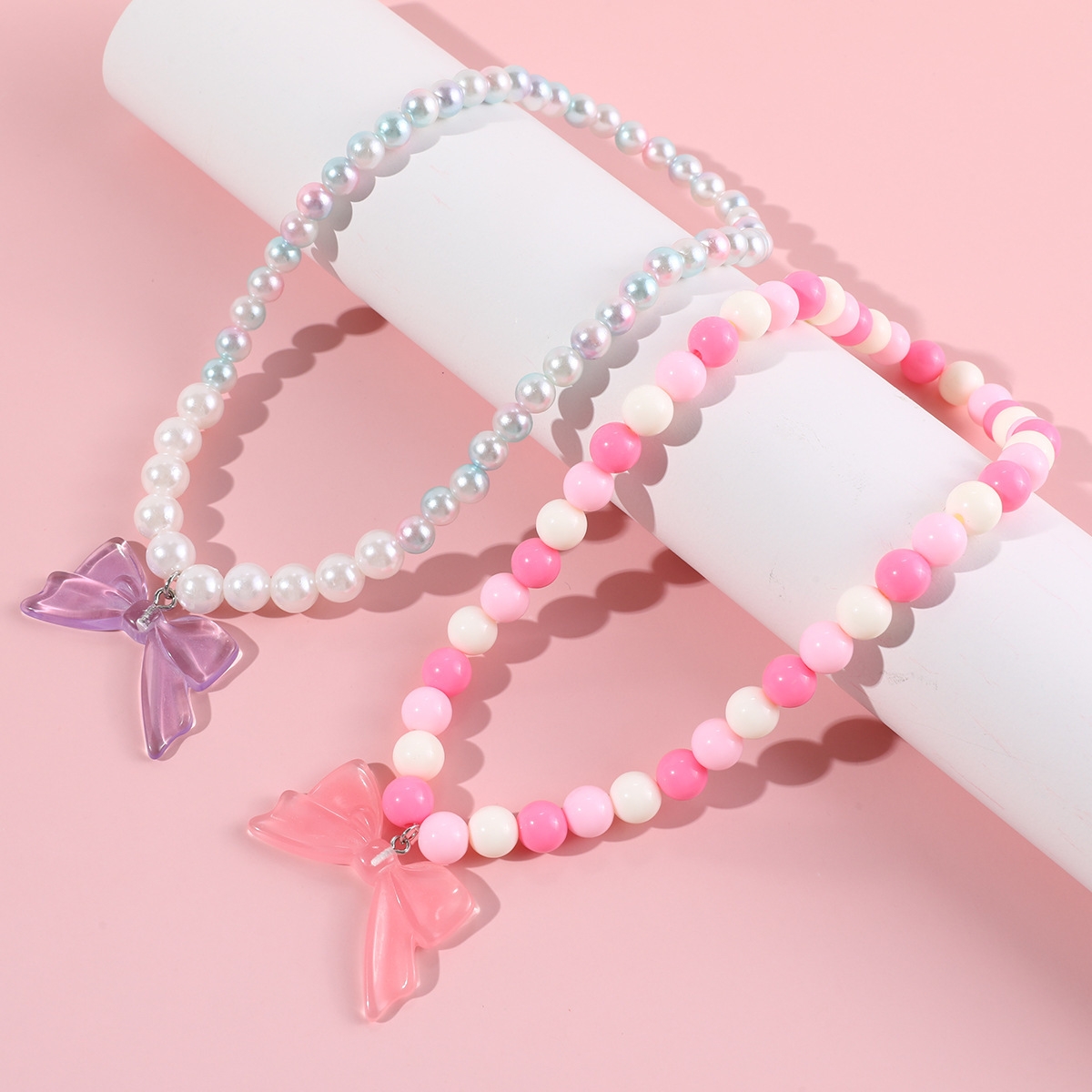 新しい甘くてかわいいアクリルリボン子供用ネックレス少女模造真珠ジュエリープリンセスネックレス
