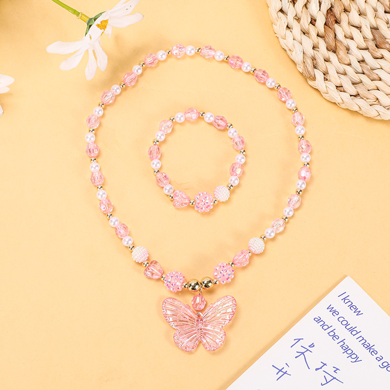 欧米の国境を越えた真珠の子供のアクセサリーのセットの漫画のかわいい蝶の数珠の蝶のブレスレットのネックレスの女の子の王女