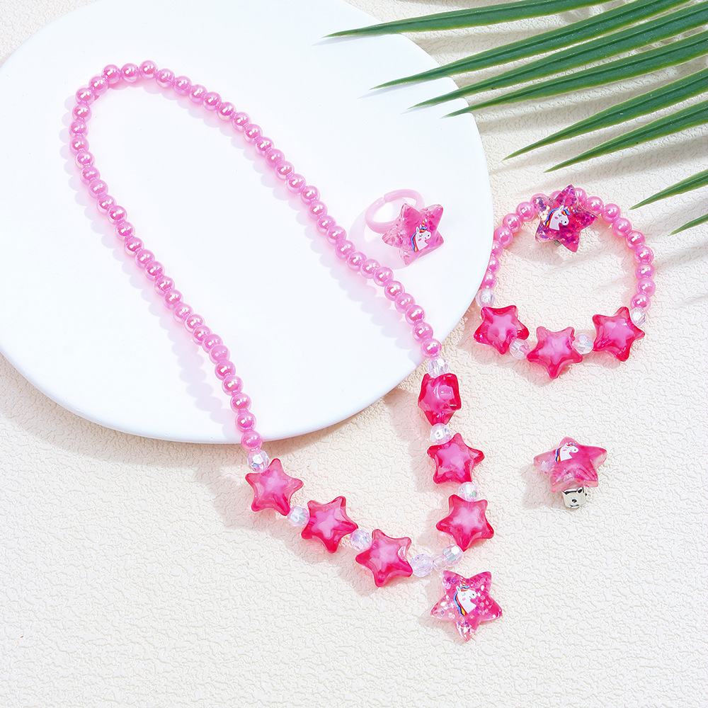 5点セット女の子かわいい五芒星ペンダントイヤリングリング魅力ビーズネックレスブレスレットセット子供用アクセサリー