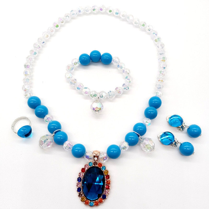 魔法の王女碧琪黛西水晶ネックレス耳クリップ少女首飾りイヤリングブレスレットセット湖青耳クリップ