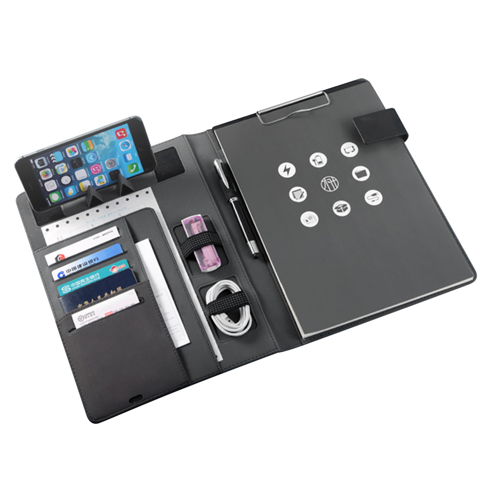 A4 プロフェッショナルレザーハングピース履歴書ポートフォリオフォルダー、携帯電話とパッドホルダースタンド付き