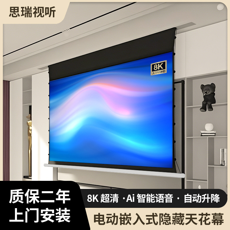 プロジェクタースクリーン隠し埋め込み式天井hd 4k自動昇降プロジェクタースクリーンリビングルーム小投影布