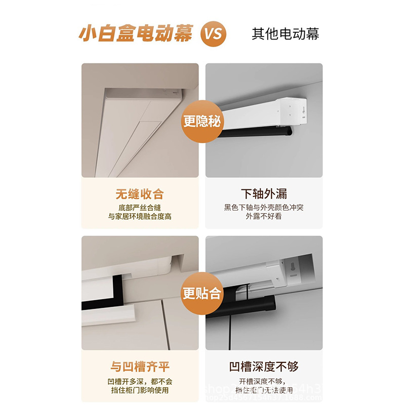 プロジェクタースクリーン家庭用吊り下げ電動プルコードリモコン自動昇降高精細抗光埋め込みフォトン小型白箱