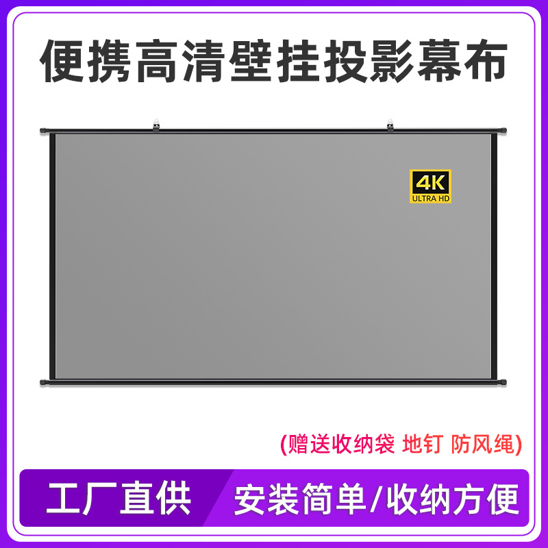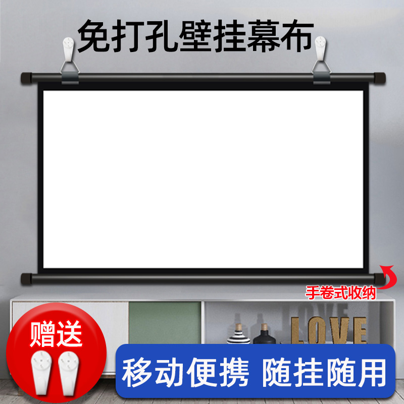 投影幕フック壁掛け幕穴なし家庭用ハイビジョン投影布84インチ100インチ120インチ移動携帯