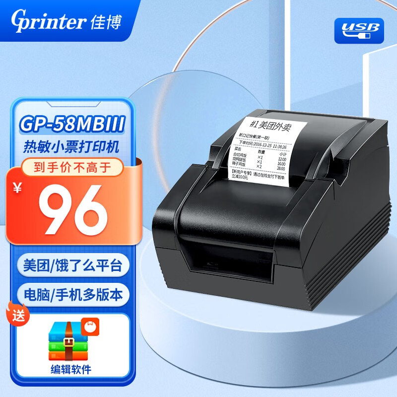 佳博 (gprinter) GP-58MBIII + 58mm感熱レシートプリンタパソコンusb版食事