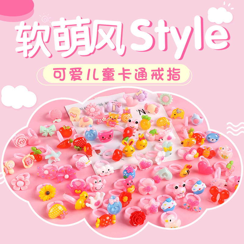 工場直販樹脂漫画子供用リング幼稚園少女プラスチック子供用ギフトハンドアクセサリーファンタジー