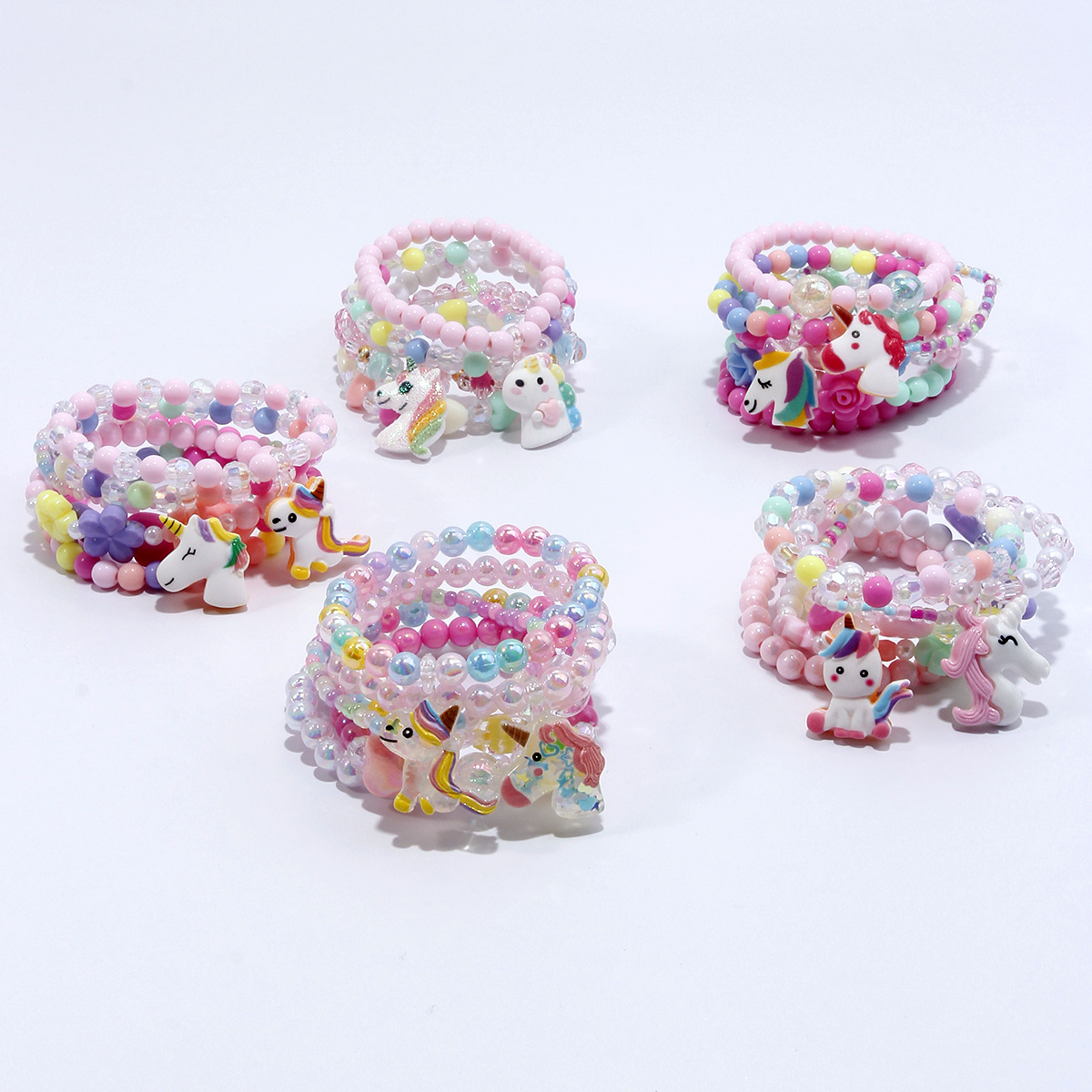 6 ユニコーン子供用ビーズブレスレットかわいい女の子ブレスレット幼稚園女の子アクセサリーハンド
