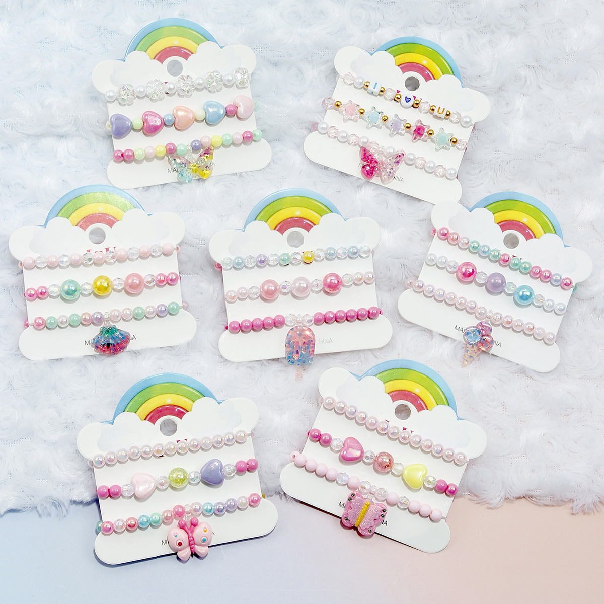 アクリル DIY 手作りパールビーズカラフルな 3 ブレスレットセット蝶レインボーペンダント子供のジュエリー