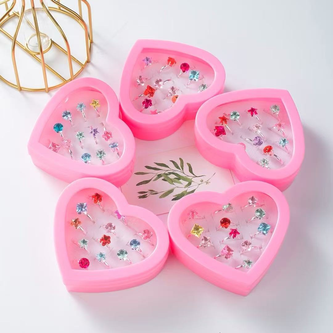 子供用リング、女の子、プリンセス、かわいい女の子のジュエリー、漫画のプラスチック製の小さなリング、幼児用ジュエリーボックス