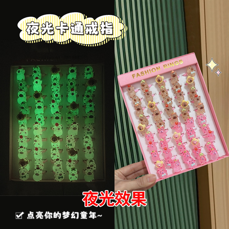 新しい夜の光の指輪のクールな赤ちゃんのかわいい漫画の樹脂の手は女の子のアクセサリーの贈り物を飾って贈り物をします。
