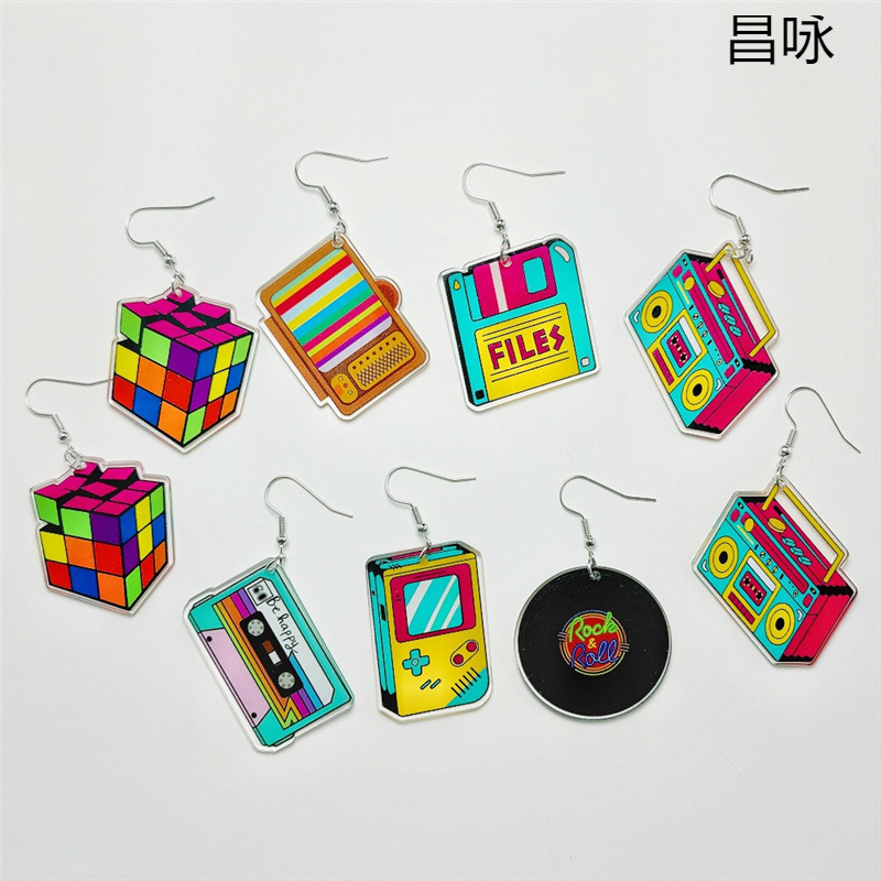 クロスボーダーアクリルレトロノスタルジックなルービックキューブゲームコンソールラジオレコードイヤリングかわいい漫画シリーズイヤリング