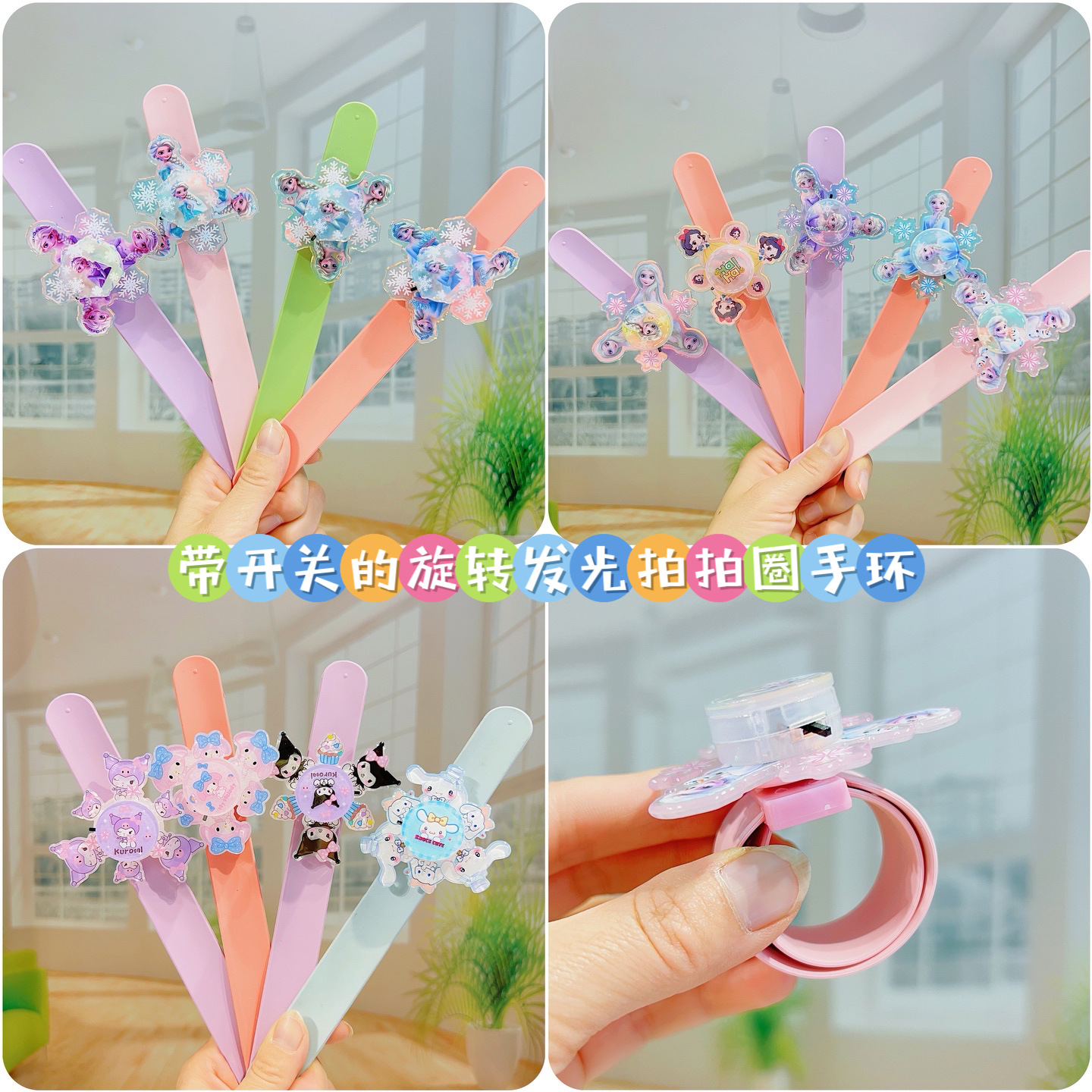 スイッチ付き漫画の男の子と女の子の赤ちゃん漫画のスナップリング発光回転点滅ライトブレスレットおもちゃライトブレスレットハンドバンド