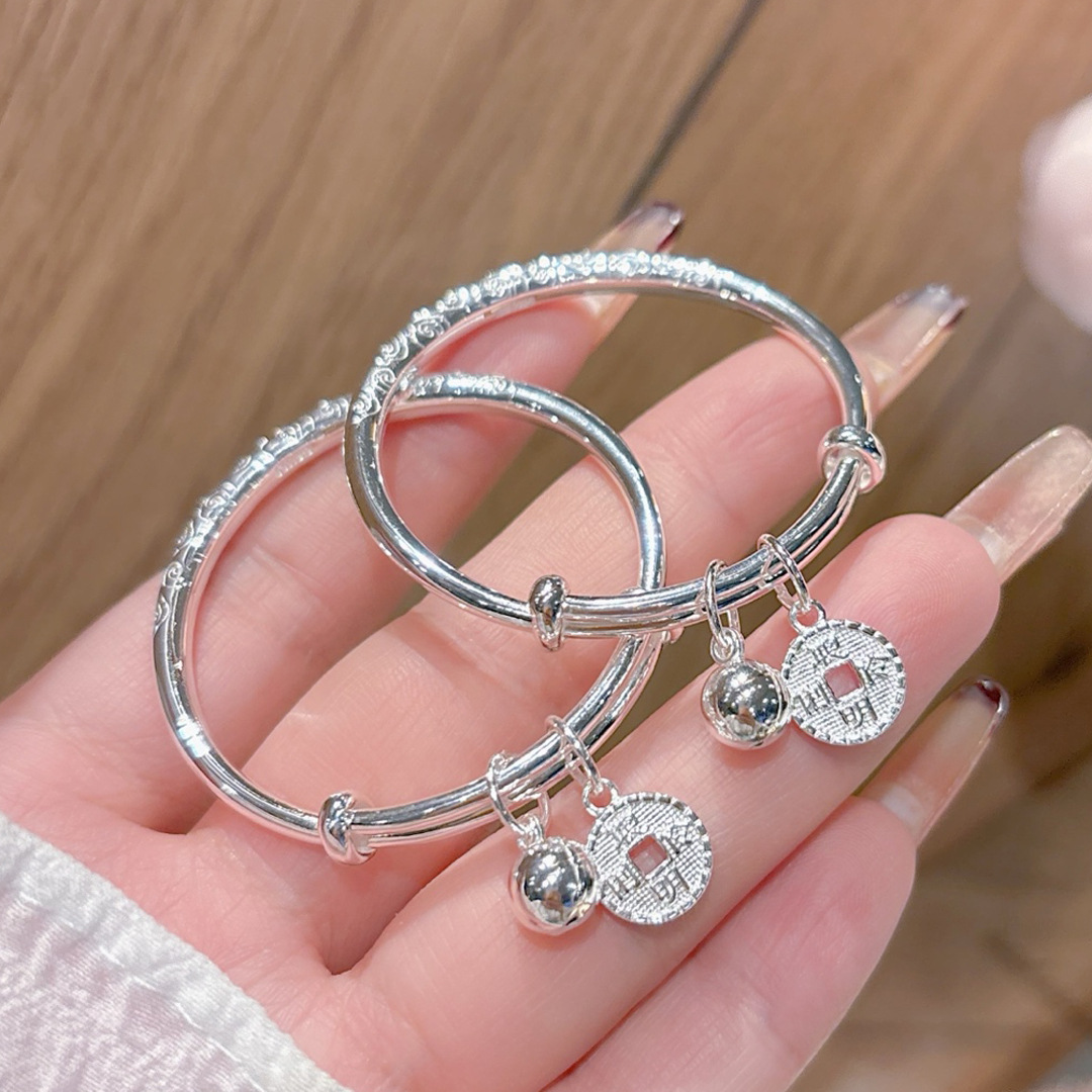 スターリングシルバー 9999 純銀光沢のあるラウンドスティック祥雲鐘スマートブレスレットベビーフルムーンスターリングシルバー子供ブレスレット