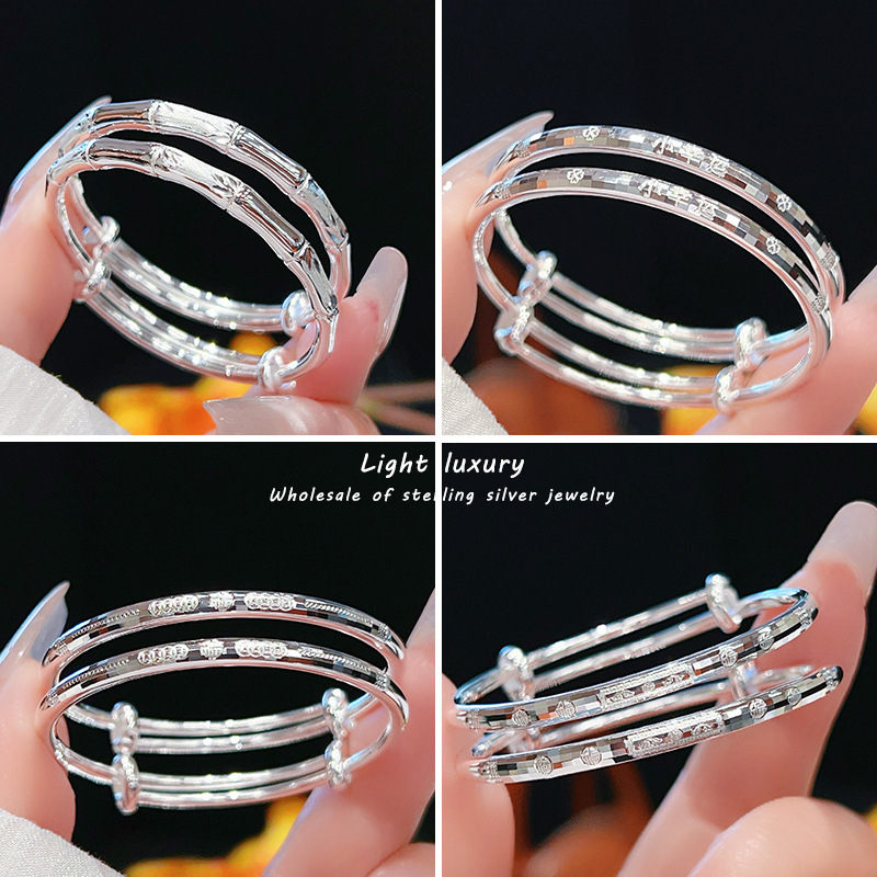 9999 純銀子供のブレスレットプッシュプルシルバーブレスレット砕氷氷吉言ブレスレットベビーブレスレット卸売満月ギフト