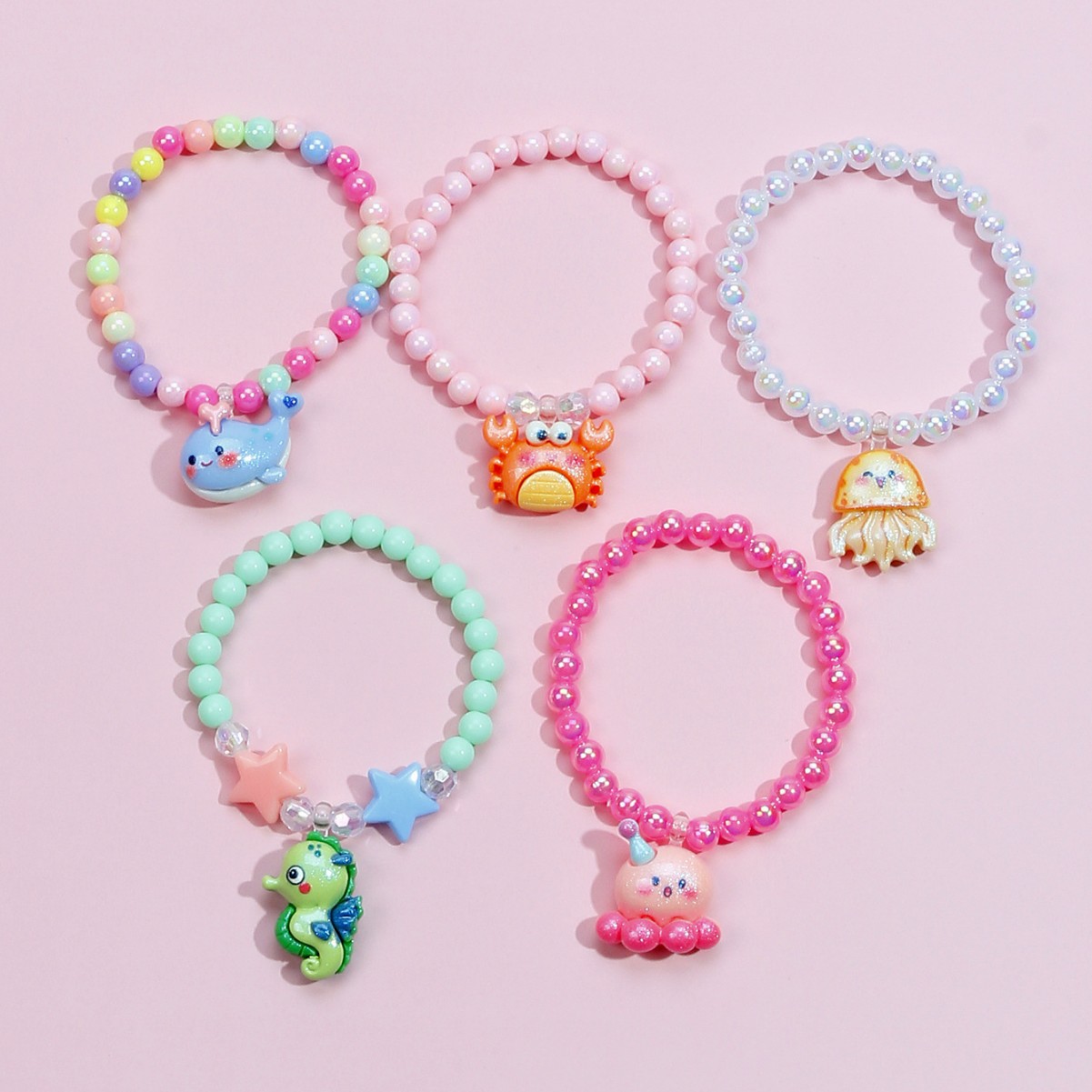 アクリル DIY 手作りパールビーズカラフルな 5 ブレスレットセットかわいいカニタコペンダント子供のジュエリー