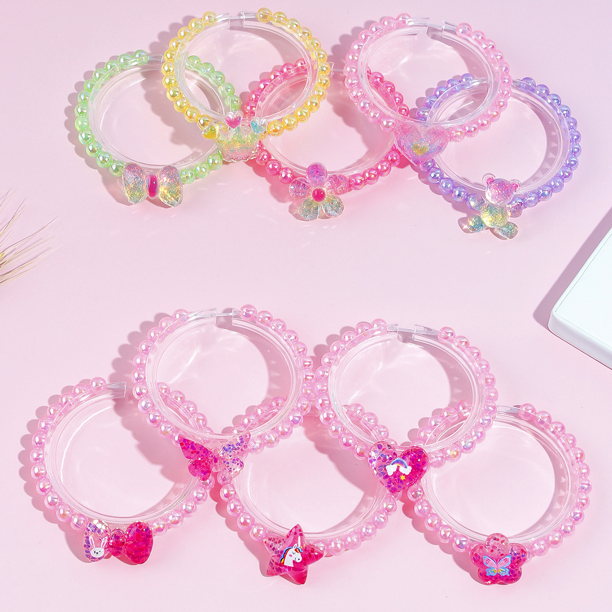 女の子用真珠光沢のあるカラフルな星真珠光沢のあるピンクの蝶のブレスレット、チャームビーズブレスレットセット、装飾品5個