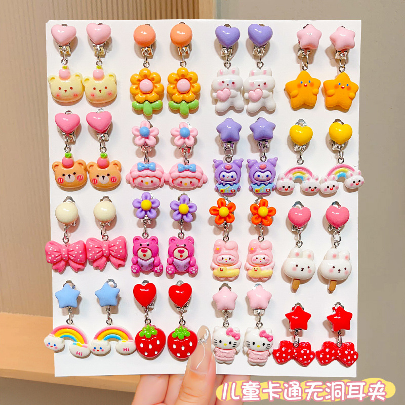 子供の漫画の愛の耳のクリップ2024の新型の小さい女の子の耳の穴がないかわいい耳の装飾品のクロミの赤ちゃんの装飾品
