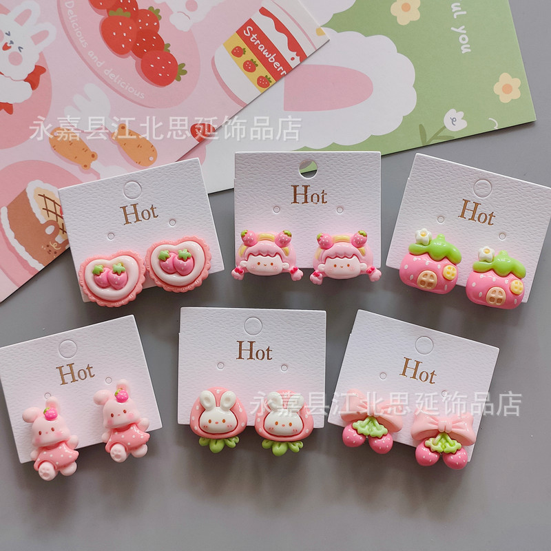 子供の樹脂の耳の穴がない耳のクリップの学生の明るい顔のかわいい耳の飾りの甘いイチゴのウサギの女の子の家の装飾品