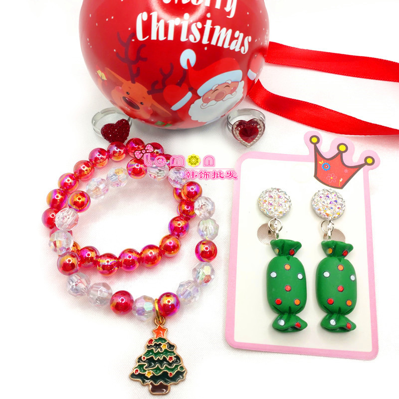 2022新品クリスマスアクセサリー子供耳クリップ女の子プリンセスブレスレットクリスマスツリーキャンディピアスピアスブレスレット