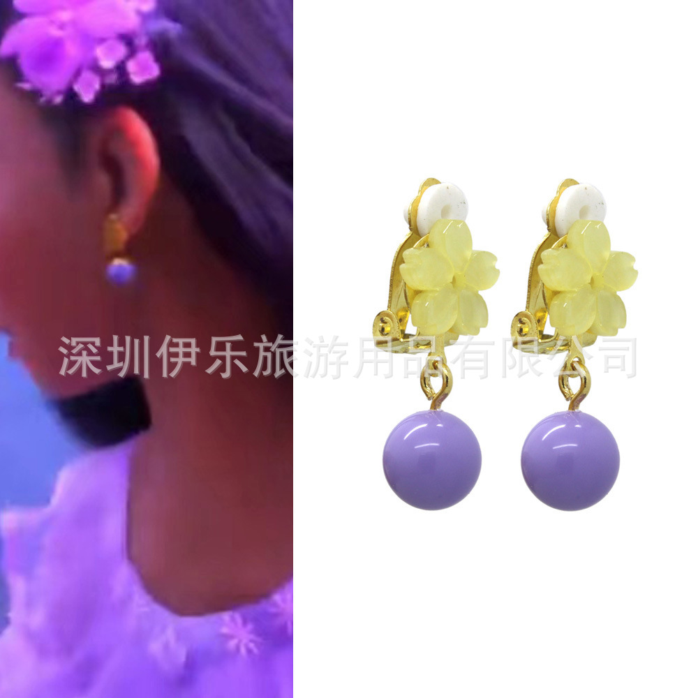 韓国版かわいいファッション子供のイヤリング子供樹脂五弁花耳クリップ耳のない王女耳飾り耳吊り