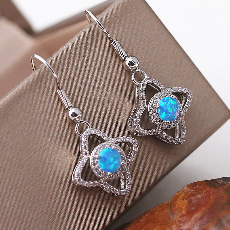 新型ファッション欧泊イヤリング個性魅力四葉草モザイクopalジルコンイヤリング少女イヤリング