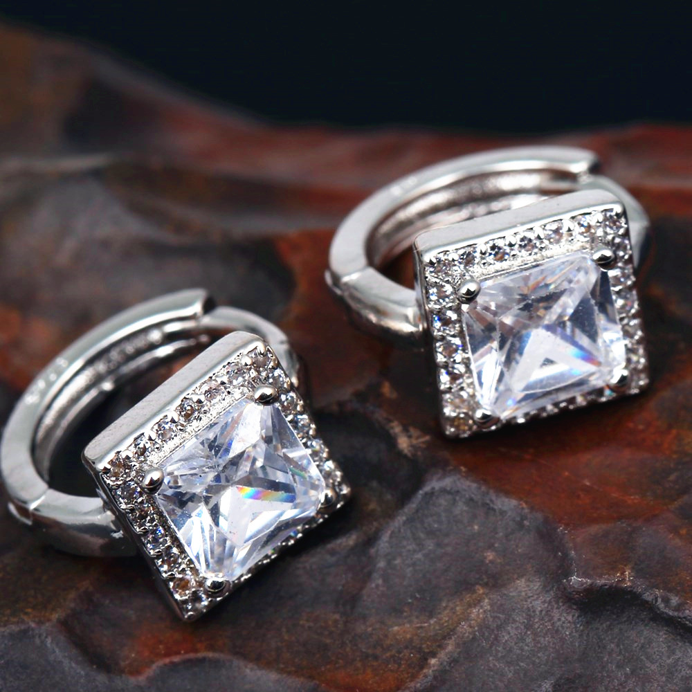 韓国版のアクセサリーのプラチナは正方形のいっぱいのジルコンのイヤリングをはめ込んでいます。