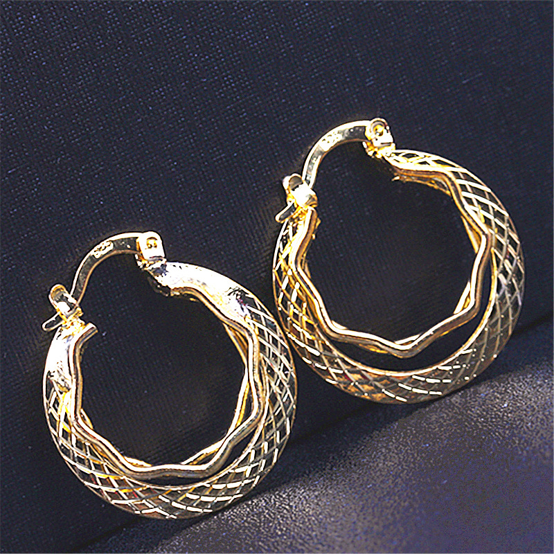 韓国版の新型金メッキ金のイヤリングの単線模様の耳飾りの外国貿易の耳飾りの少女の清新な耳飾りの卸売り
