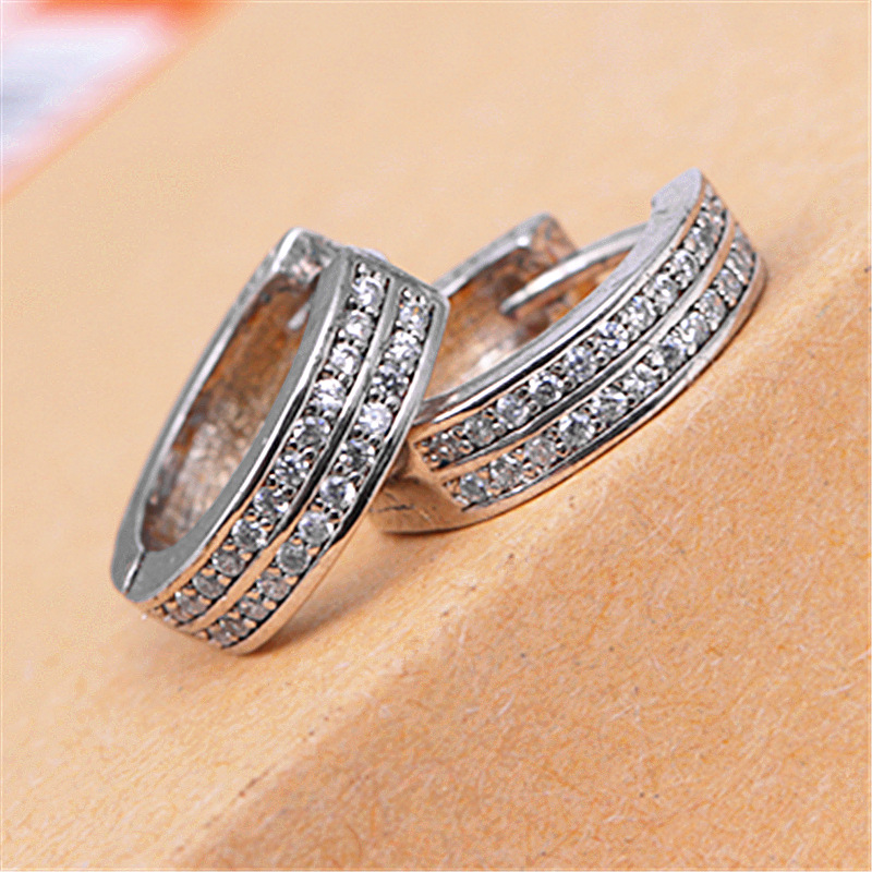 新しい韓国のアクセサリーは二列のジルコンのイヤリングをはめ込んでいます。