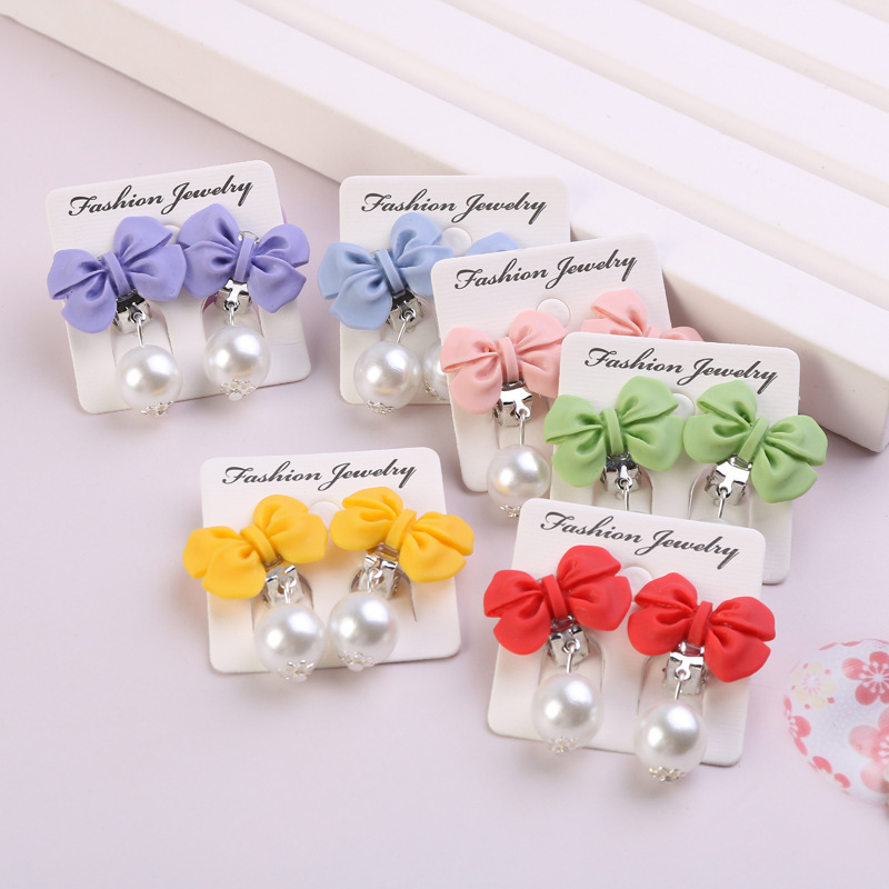 新しい子供の耳のクリップの耳の穴がない漫画の韓国版の蝶結びの真珠のイヤリングの女の子のアクセサリの代行