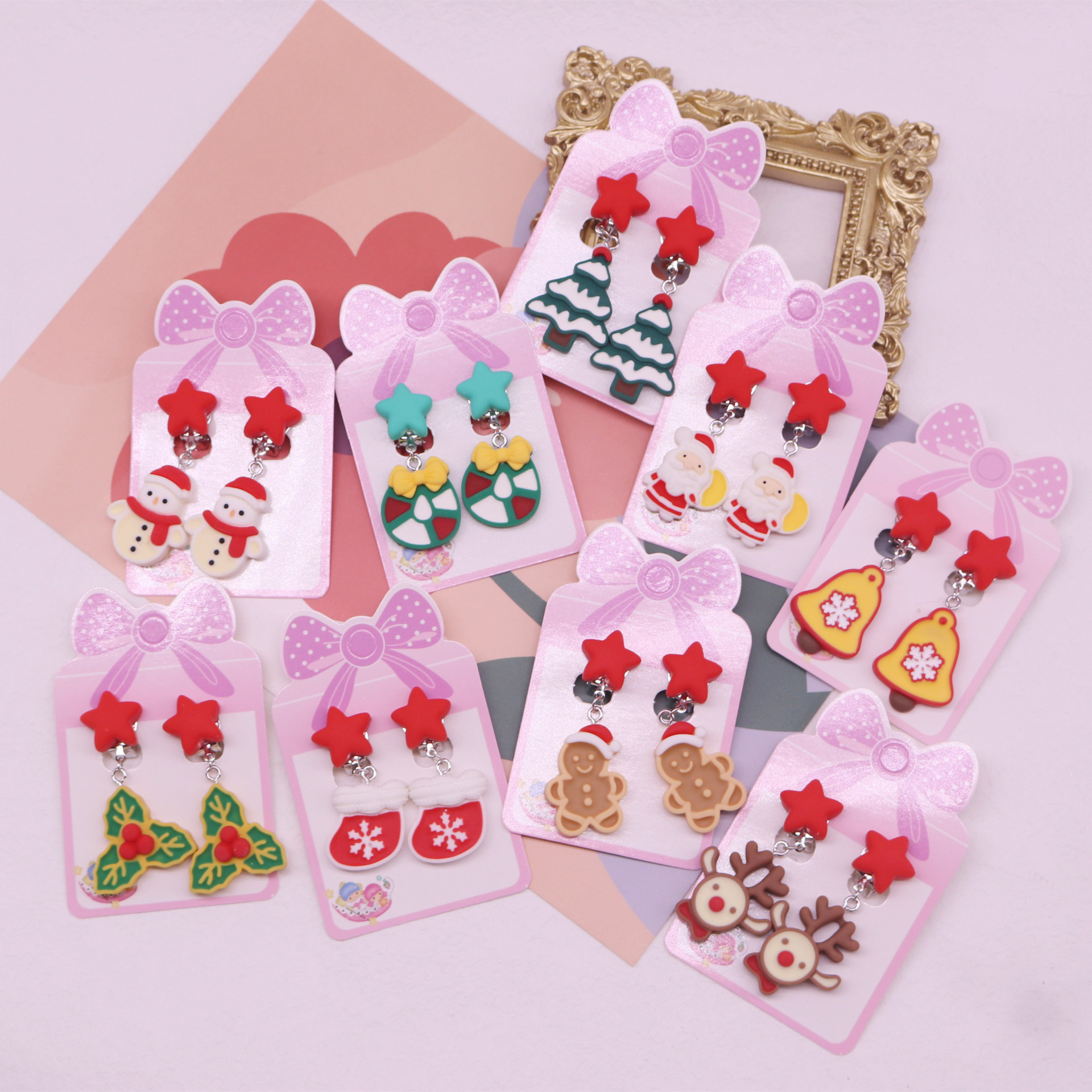 卸売りの新しいアニメの子供の耳のクリップの耳の穴がないクリスマスの吊り珠のフリンジのイヤリングの女の子の装飾のイヤリングのペアの価格