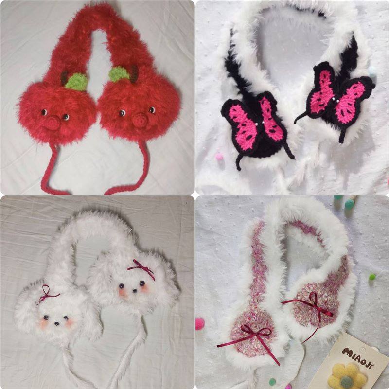 ニット耳カバー紫色のぬいぐるみ耳カバー耳カバー冬アニメ子供耳カバー耳カバーニットカラー