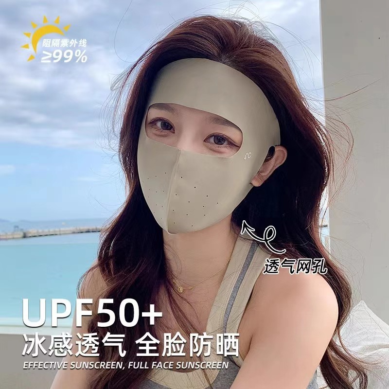 無痕 ℃ 全顔日焼け止めマスク紫外線防止女性夏日よけ顔ジニ氷糸薄い通気マスク