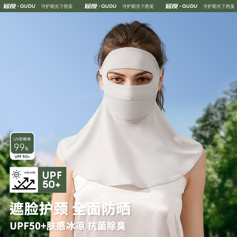 Upf50 + 日焼け止めマスク女性夏首保護紫外線顔ジニ無痕氷糸通気マスク