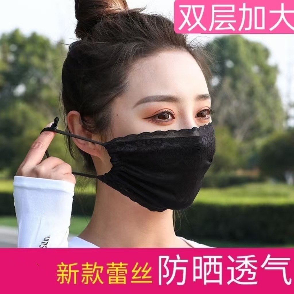 夏の女性の超薄型二重層マスク日焼け止めアイスシルク超通気性妖精セクシーなレースマスクファッショナブルで柔らかく涼しい