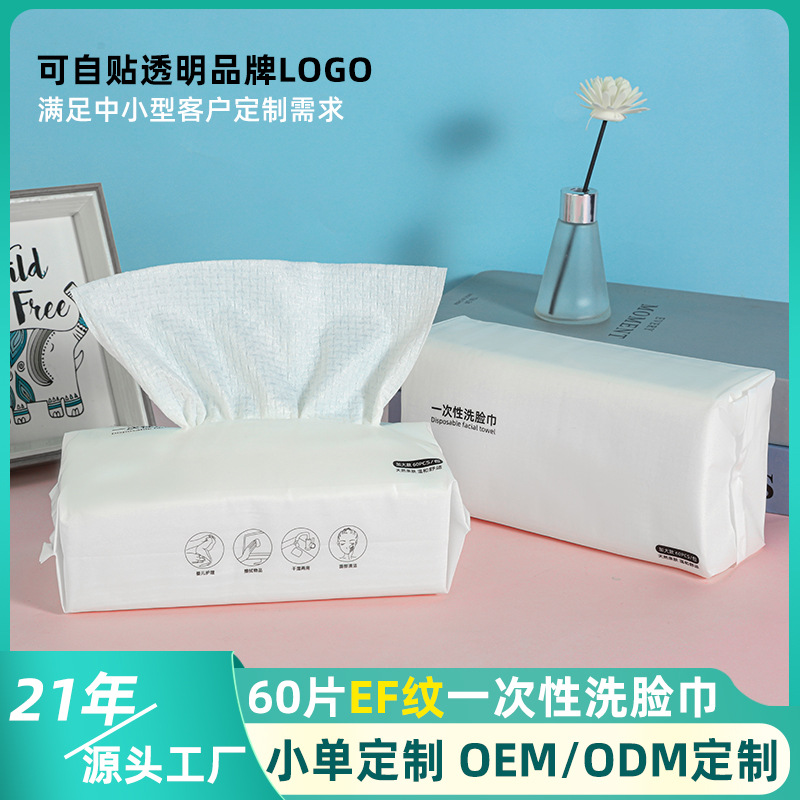使い捨て植物繊維フェイスタオル 中性 60枚入り ロゴ印刷可能 無地包装 プッシュ式フェイスタオル カスタム