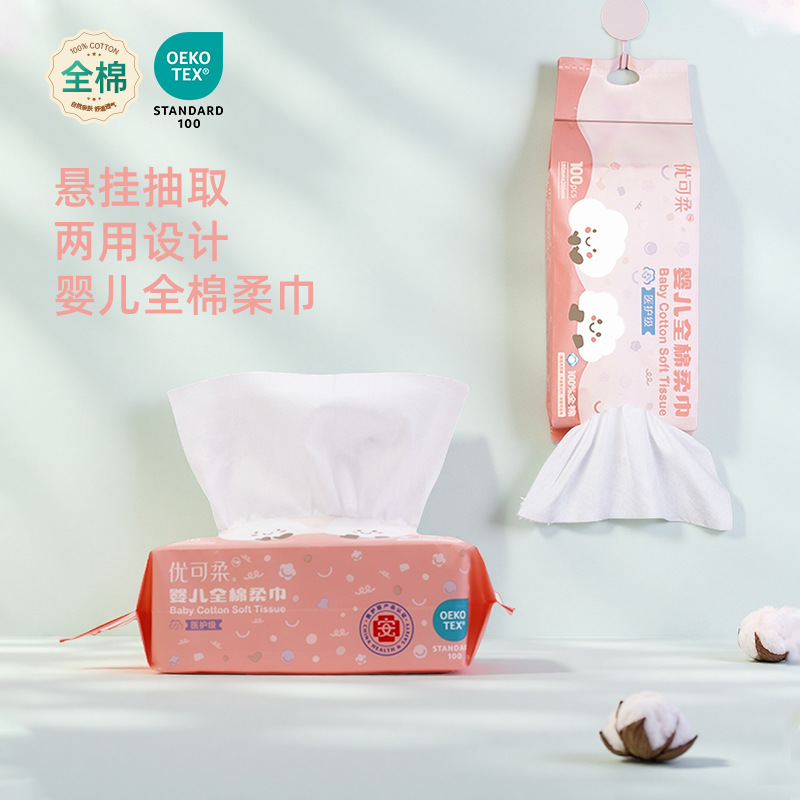 綿100%の平織り使い捨てフェイスタオル、吊り下げ式と引き出し式の両用、幼児にも適した洗顔用ソフトタオル、カスタムメイド