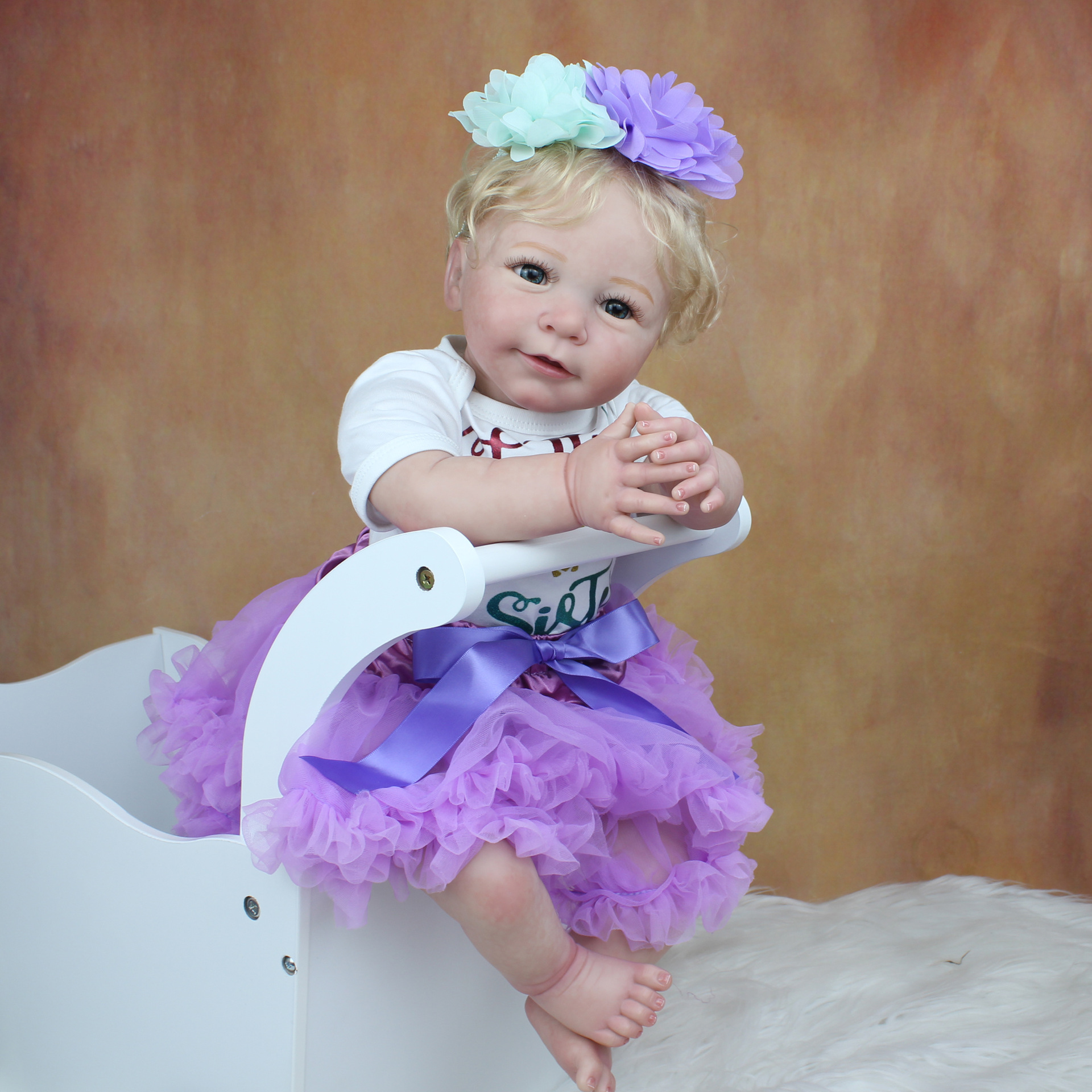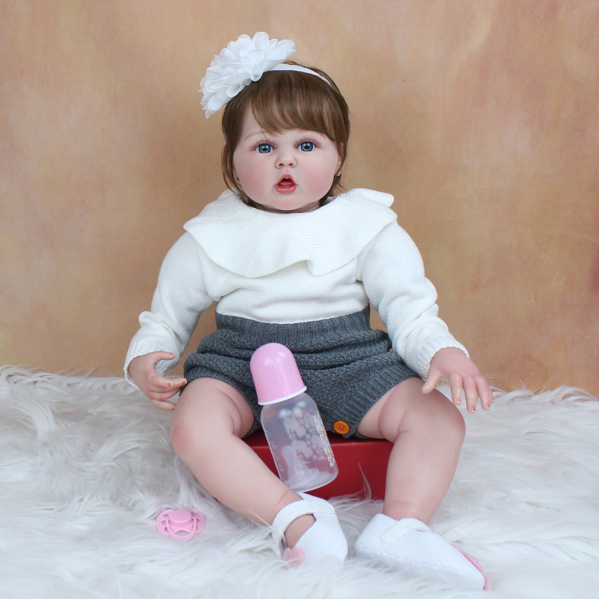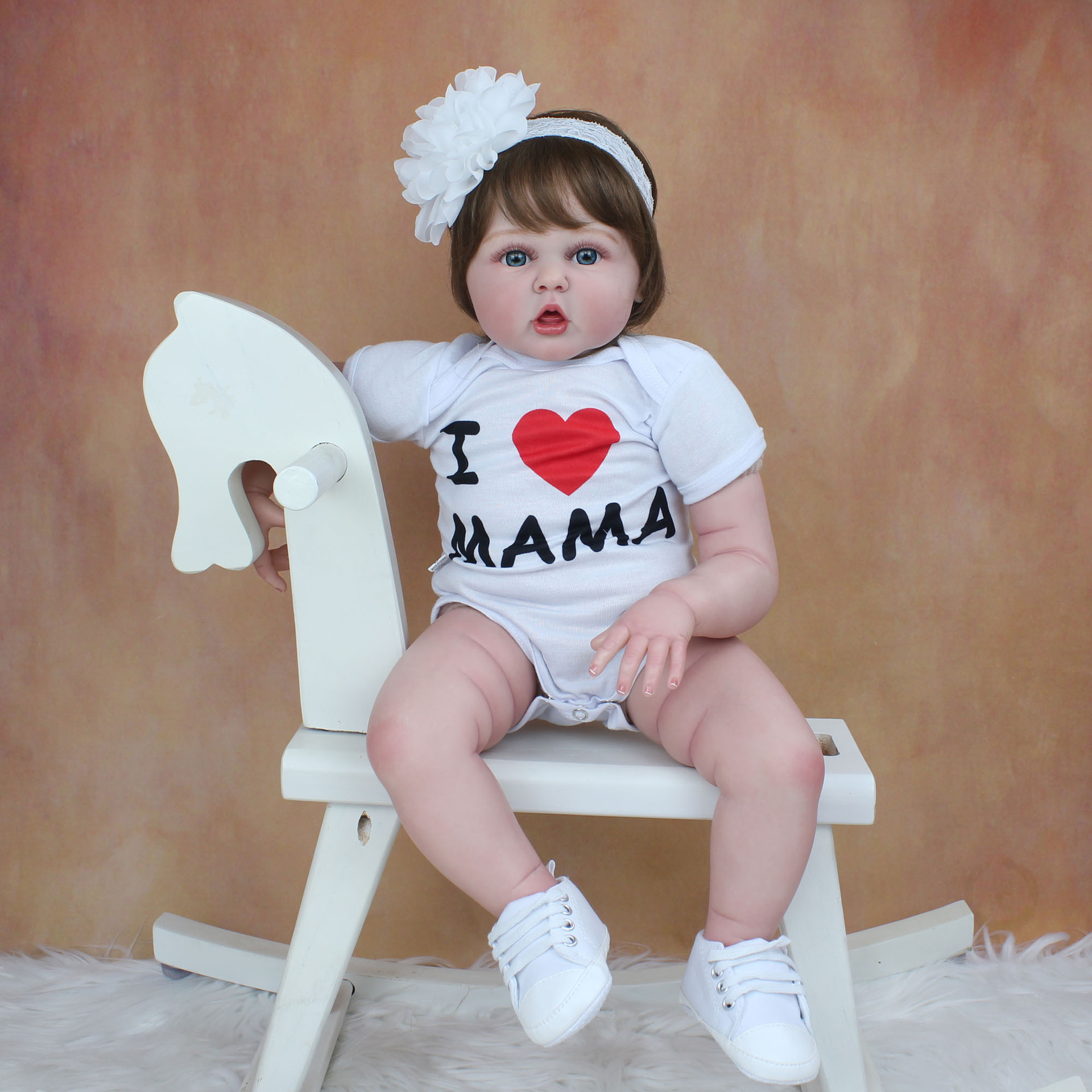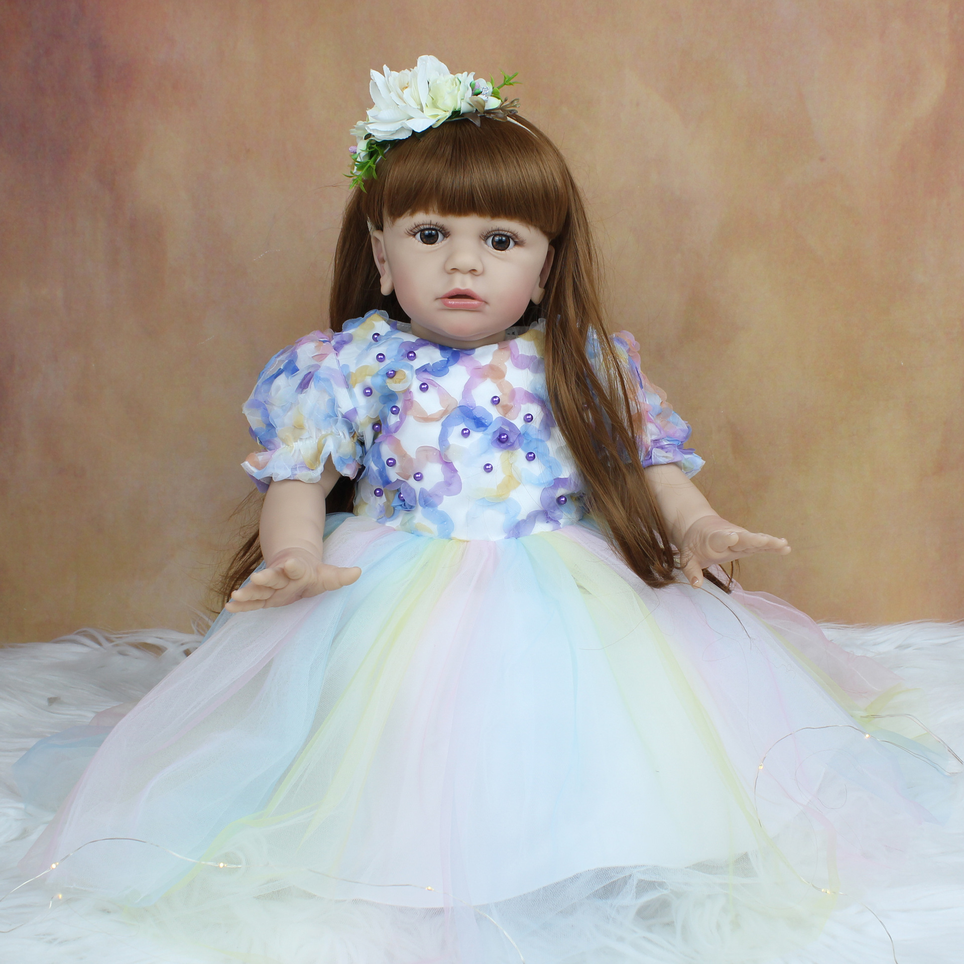 55cm3d高彩有血管青筋シミュレーション綿体再生赤ちゃんブラウン髪女の子かわいい人形誕生日プレゼント